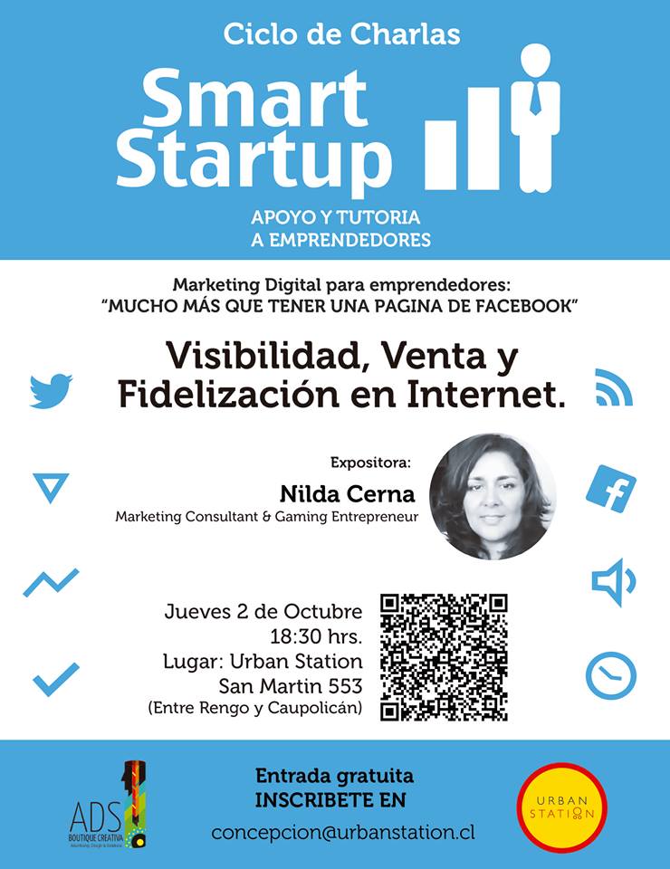 El jueves pasado realicé una charla llamada “Visibilidad, Venta y Fidelización en Internet, mucho más que una página en Facebook”. La convocatoria generó un gran interés en la comunidad de emprendedores locales en Concepción Chile. Por lo que se llenó la sala de exposición en el espacio de Co-Work Urban Station.